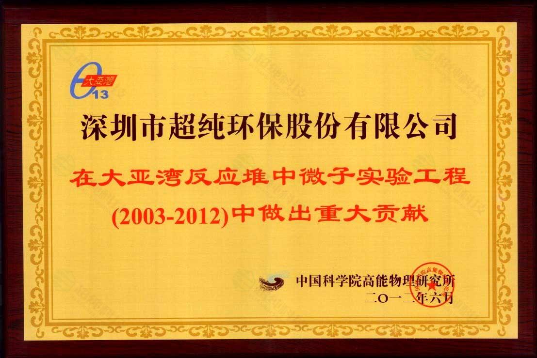 大亞灣中微子實驗貢獻(xiàn)獎