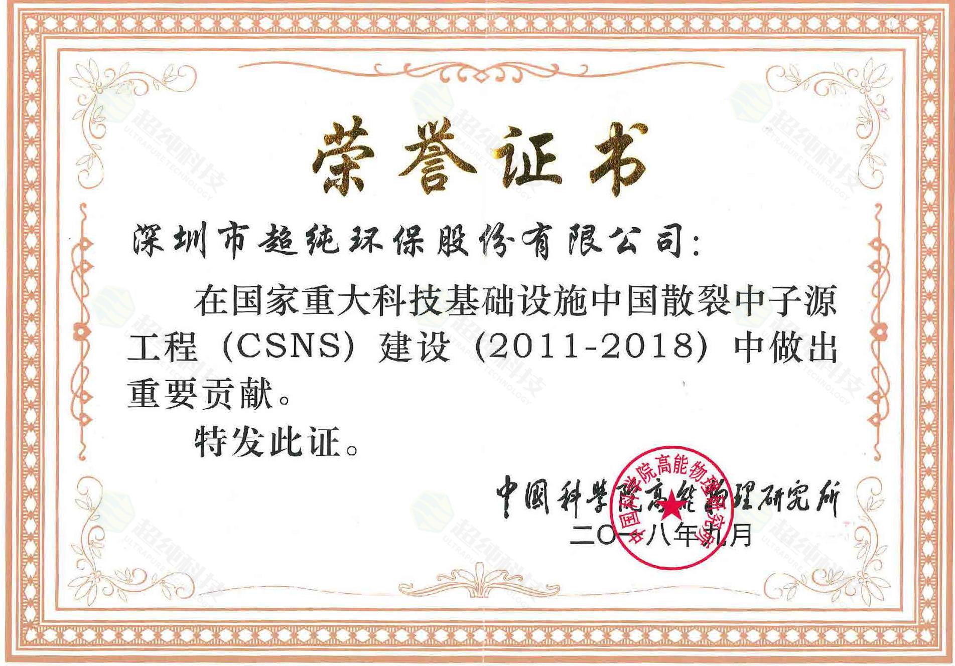 中國科學(xué)院高能物理研究所榮譽(yù)證書